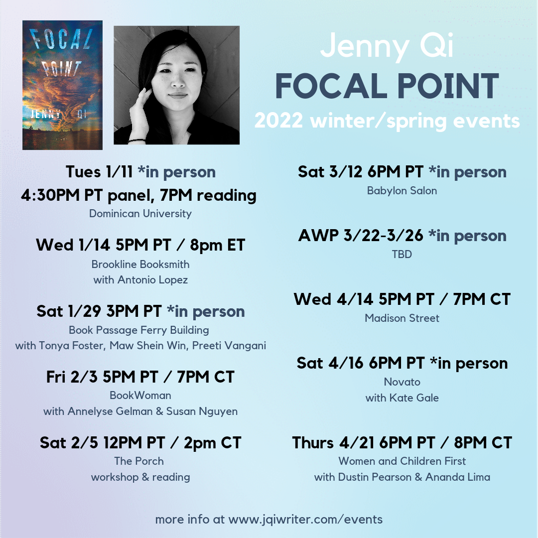 Here’s a preview of events coming up next year, including virtual readings with Antonio Lopez at Brookline Booksmith on January 19 and with Susan Nguyen and Annelyse Gelman at BookWoman on February 3. More to come on that front, and in-person events subject to change based on the evolving pandemic.